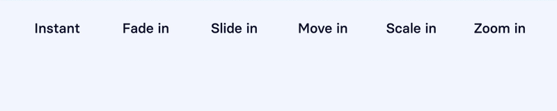 Move in | Gradually moves the element in from a specified direction (slight fade in applied) |