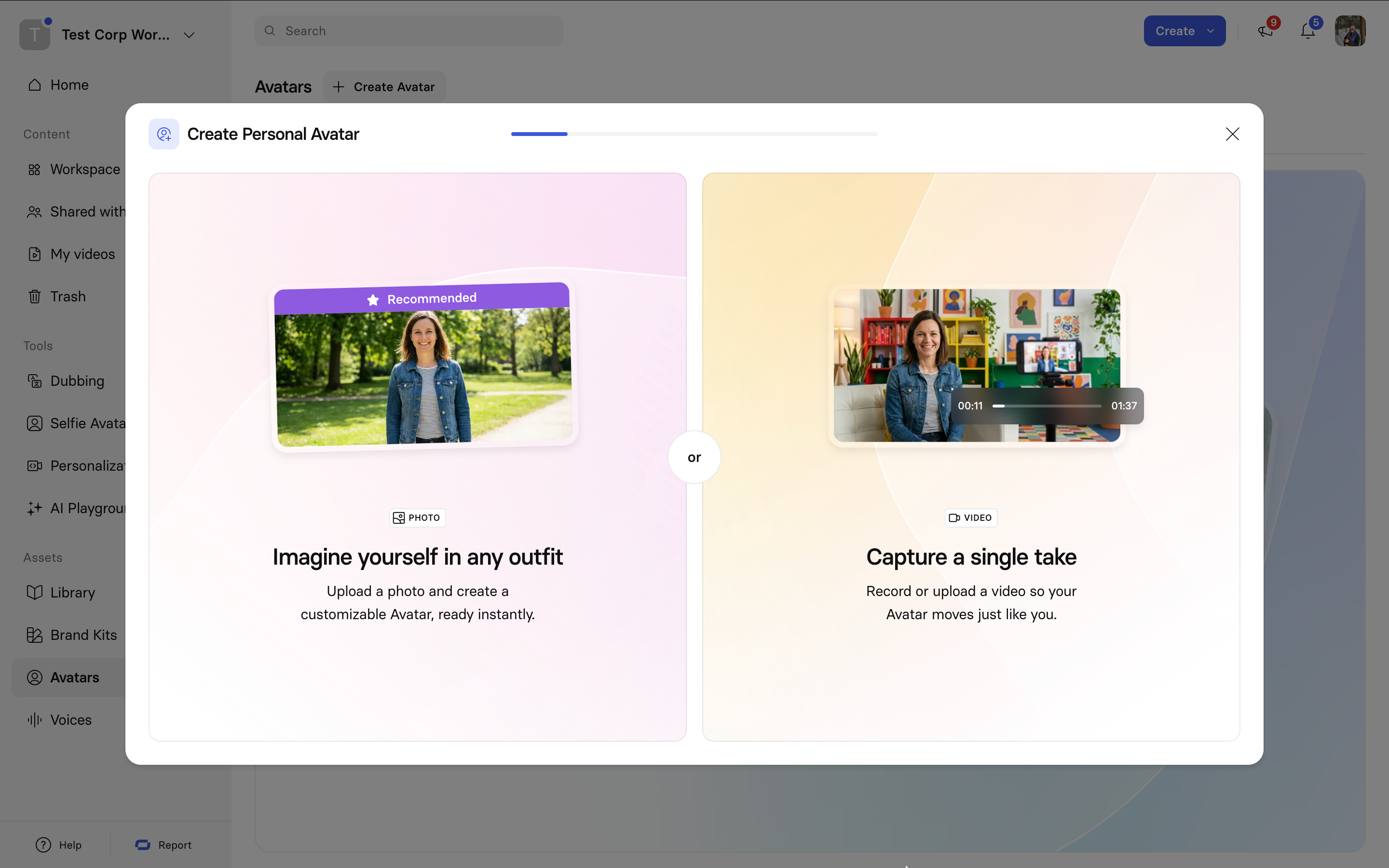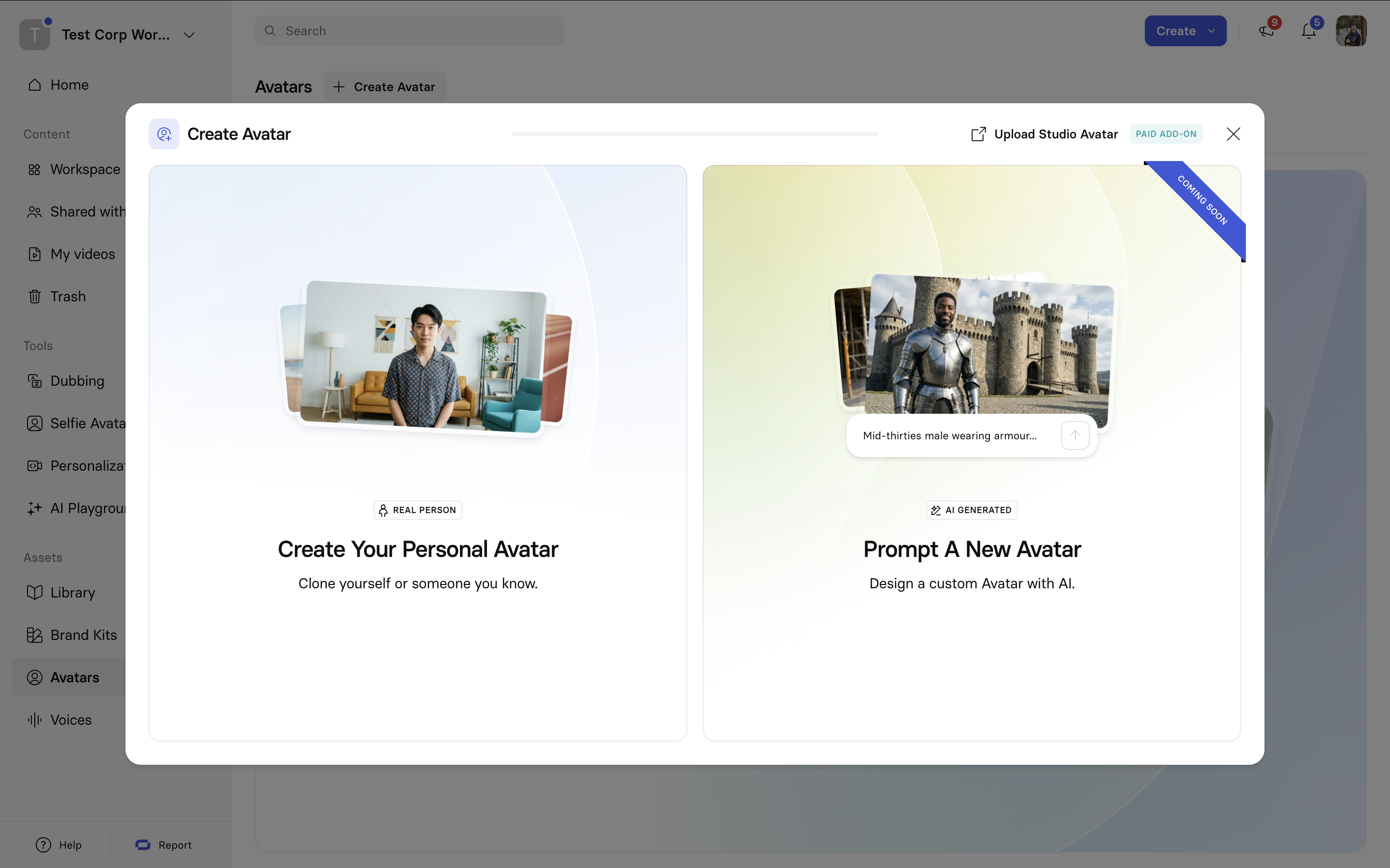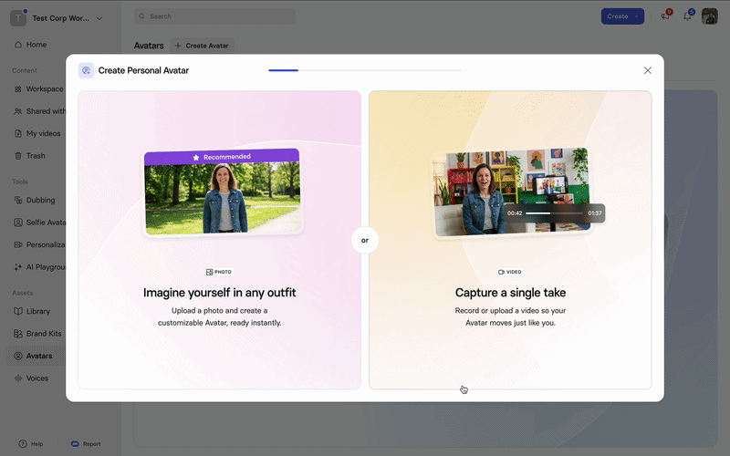 When you click + Create avatar on the Avatars page, you’ll see the following creation options: