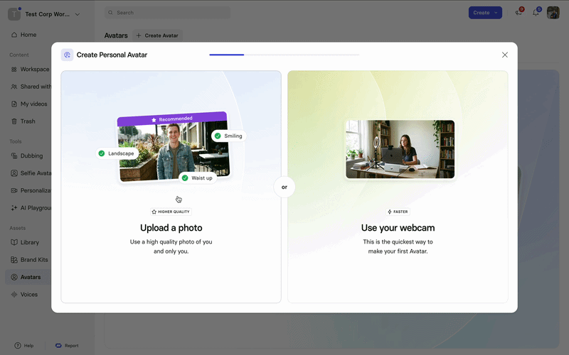 You can create a Personal Avatar in multiple ways, depending on how you want to capture your likeness.