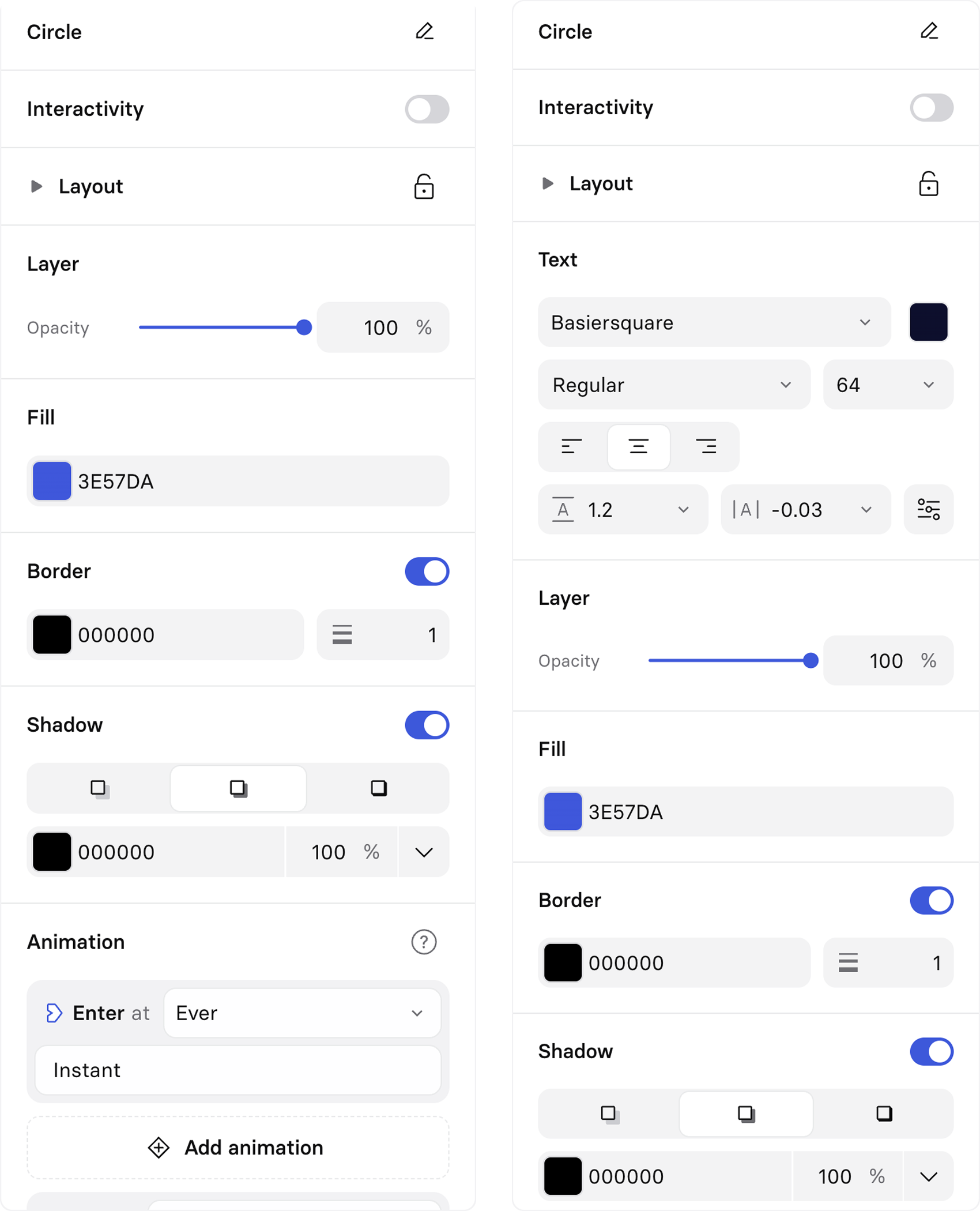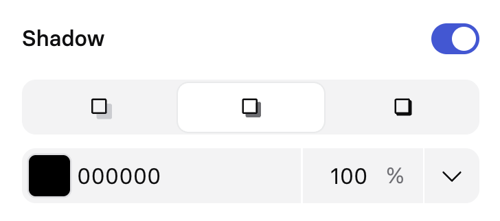 Toggle the shadow option in the inspector panel on to add and define the shape's shadow style, color, and the opacity of the shadow.