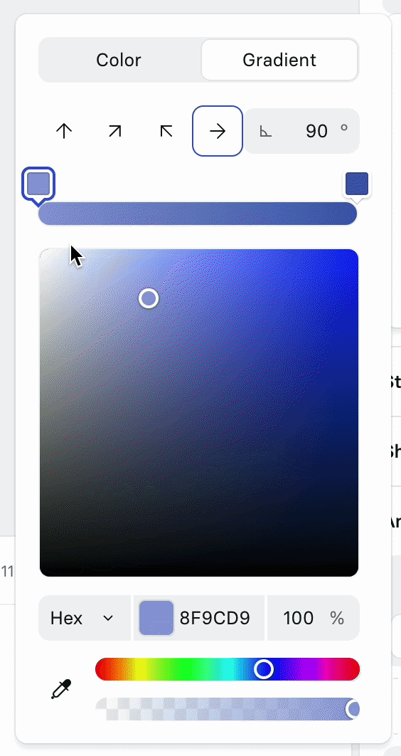 - Setting direction of gradient in degrees (e.g., 0°, 45°, 90°, 315°)The Color Picker opens when you click Use the color picker to change the color of your text in your scene. Chose between: