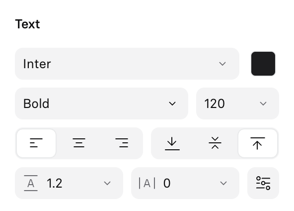 Set the color of your text. Clicking Text Color opens the Color Picker panel — see Color Picker below.