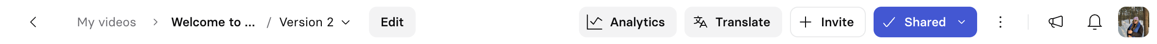 Once you generate a video at least once, you can access the video overview page by clicking on the video from your Workspace, My videos , or Shared with me.