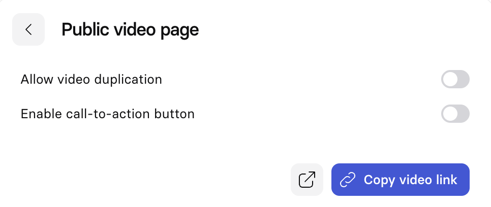 | Allow video duplication | Allow your viewers to create a copy of the video in their own Synthesia account. |