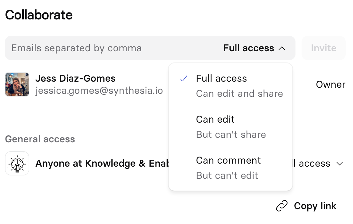 - Set permission levels (Commenter, Editor, or Full Access)